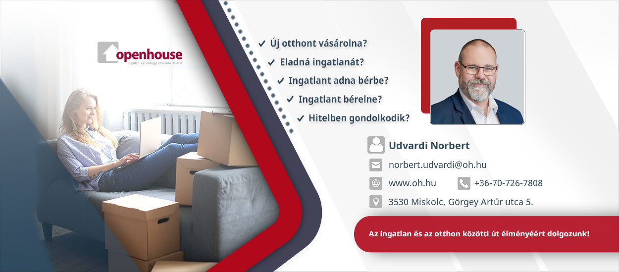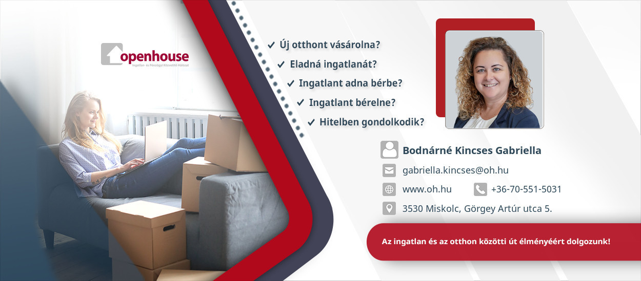 Az Openhouse Országos Ingatlanhálózat tagjaként, amely az ingatlanpiac egyik meghatározó szereplője, szakmailag felkészülten várjuk Tisztelt Ügyfeleinket irodánkban a Tudomány és Technika Házában Miskolcon a Görgey Artúr utca 5. szám alatt.